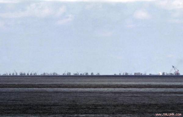 Những hoạt động cải tạo đất trái phép của Trung Quốc trên đá Subi nhìn từ đảo Thị Tứ tại biển Đông vào ngày 11-5-2015. Ảnh: Reuters.