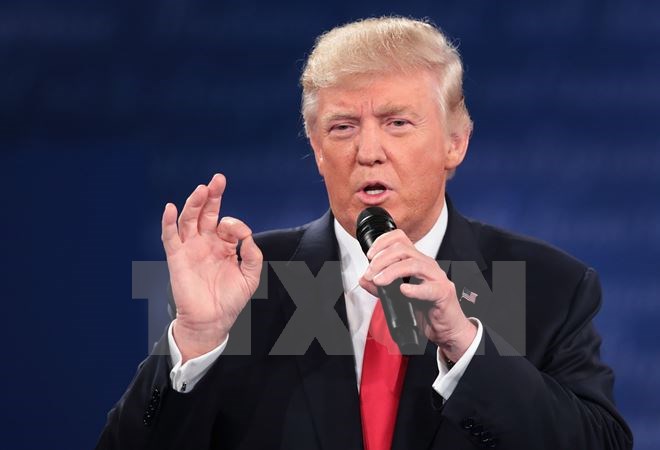 Ông Donald Trump trong cuộc tranh luận trực tiếp thứ hai với bà Hillary Clinton tại St. Louis, Missouri, Mỹ ngày 9/10. (Nguồn: AFP/TTXVN)