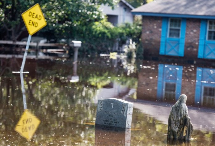 Một nghĩa địa chìm trong nước sau bão Matthew tại Lumberton, North Carolina, 15 Tháng Mười. (Hình: Sean Rayford/Getty Images)