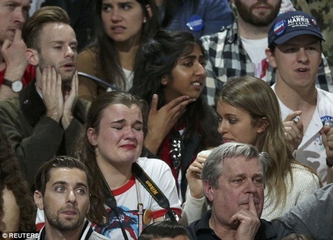 Trái ngược với niềm vui của những người ủng hộ tỷ phú Mỹ, các cử tri bầu cho cựu ngoại trưởng Clinton lúc này rơi vào trạng thái hoang mang tột độ. Nỗi lo lắng hiện rõ trên khuôn mặt họ
