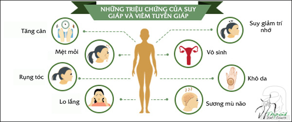 Ở giai đoạn đầu phát bệnh, nhiều bệnh nhân có triệu chứng như mệt, tăng cân nhẹ mà nhiều người nghĩ rằng đó là dấu hiệu bình thường nên bỏ qua. Khi bệnh nặng hơn thì sẽ thấy các triệu chứng phổ biến như: Mệt mỏi, sợ lạnh, táo bón nặng, da khô, phù mặt, khàn giọng, tăng hoặc giảm cân không rõ lý do, đau cơ, cứng cơ, rối loạn kinh nguyệt, trầm cảm, buồn ngủ, tuyến giáp to lên hoặc teo đi...