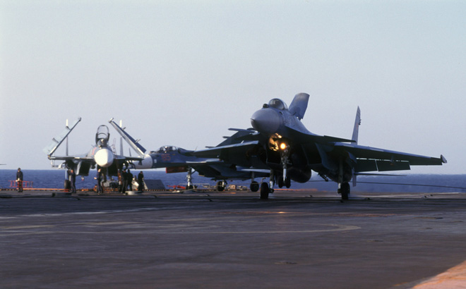 Chiếc hàng không mẫu hạm hạng nặng duy nhất của Nga lẽ ra phải là căn cứ để triển khai các máy bay ném bom gần bờ biển Syria, nhưng 2 trong số đó rơi xuống biển.