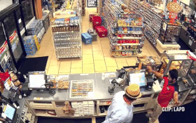 Trên màn hình camera giám sát cửa hàng có ghi lại được cảnh người đàn ông, hiện chưa rõ danh tính, cướp khoảng 300 USD (hơn 6 triệu VNĐ) vào hôm 16/11 tại cửa hàng 7-Eleven, El Segundo Boulevard, đường Figueroa, California, Mỹ.
