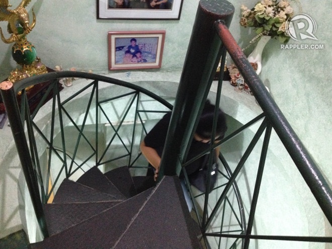 Cầu thang xoắn ốc dẫn lên phòng ngủ.