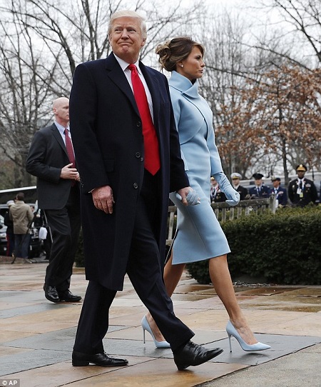 Đệ nhất phu nhân Melania đã trở thành điểm sáng trong lễ nhậm chức của tân tổng thống. Bà mặc bộ váy sang trọng màu xanh da trời do hãng Ralph Lauren thiết kế. Phong cách này làm người dân Mỹ nhớ đến bà Kennedy một thời.