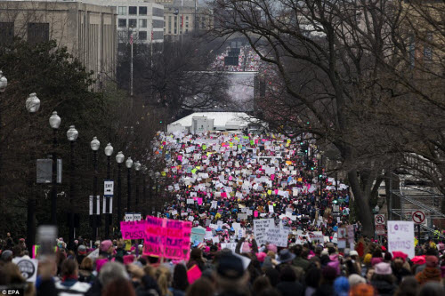 Hơn 500.000 người được cho là đã đổ ra đường phố ở thành phố Washington (ảnh) để tham gia biểu tình phản đối Tổng thống Mỹ Donald Trump, do lo ngại quan điểm và chính sách của ông sẽ gây ảnh hưởng tới các quyền của phụ nữ