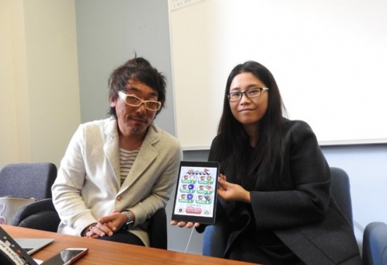 Norio Nakayama (trái) và Akiko Katagiri từ Obokaidem giới thiệu Ninja Spinki Challenges. Ảnh: Venture Beat.