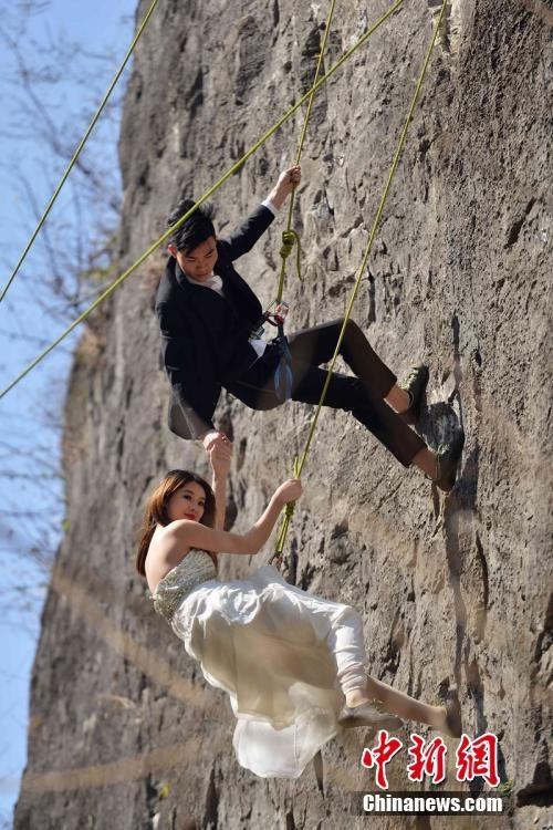 Để có bộ ảnh cưới độc lạ có 1-0-2, nhiều cặp đôi Trung Quốc đã không màng đến tính mạng của bản thân. Họ treo người trên vách núi cao 100m để chụp ảnh cưới. Chỉ cần sơ sẩy là một trong hai có thể mất mạng như chơi.