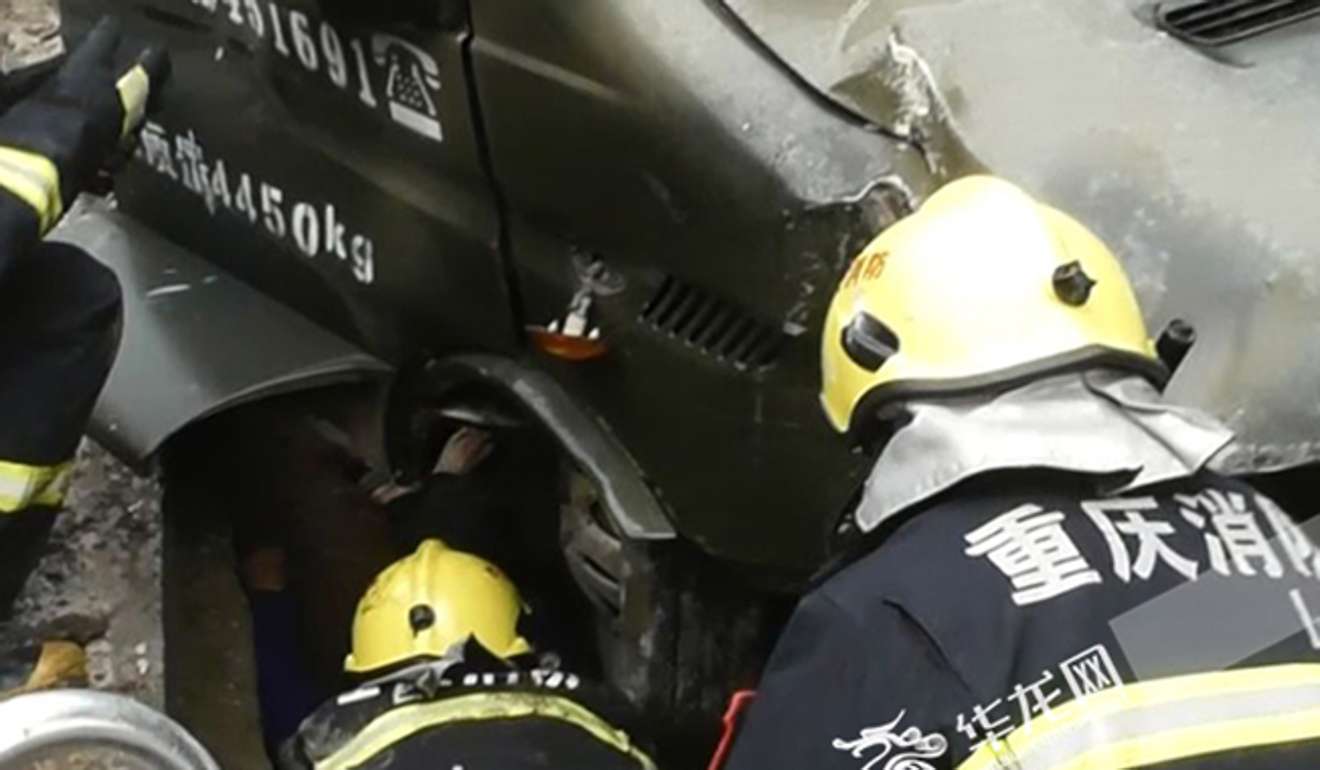 Lực lượng cứu hộ đến giải cứu nạn nhân mắc kẹt dưới gầm xe
