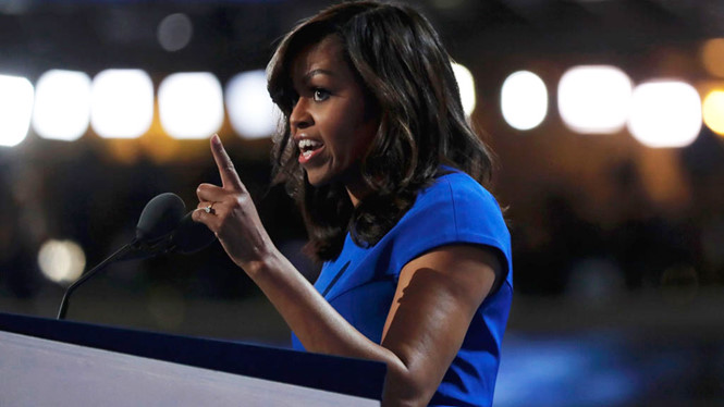 Hãng truyền thông BBC dẫn lời đệ nhất phu nhân Obama: "Mỗi buổi sáng, tôi thức dậy trong căn nhà do những người nô lệ xưa kia xây dựng lên. Và tôi ngắm 2 con gái - 2 phụ nữ trẻ da đen xinh đẹp, thông minh - chơi đùa với chú chó trên bãi cỏ Nhà Trắng. Và nhờ Hillary Clinton mà giờ đây con gái của chúng tôi cũng như tất cả con trai, con gái của chúng ta đều lần đầu tiên có thể tin rằng một phụ nữ có thể làm tổng thống của nước Mỹ".
