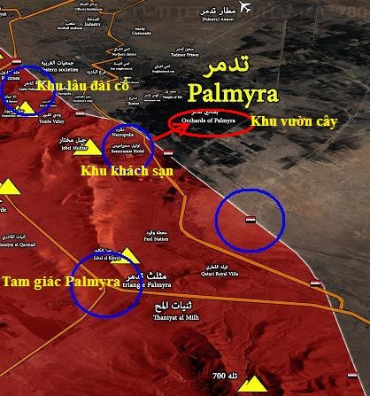 Với hỏa lực áp đảo, Quân đội Syria đã giành lại quyền kiểm soát khu vực lâu đài cổ Palmyra ở phía Tây Bắc và các dãy núi ở phía Tây Nam. “Và bây giờ chúng tôi đã sẵn sàng mở cuộc tấn công giải phóng thành phố" - nguồn tin của Quân đội Syria cho biết.