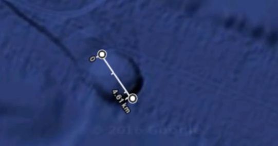 Một vật thể bí ẩn đang dịch chuyển cách mặt nước biển khoảng 1km. Đây là một vật thể khổng lồ như quả núi vậy. Nó có đường kính tới 4km. Đài Sputnik của Nga cho rằng vật thể chưa xác định này có đường kính khoảng 4km là một vật thể nhân tạo.