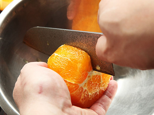 - Mở ra và tách từng múi cam khỏi vỏ.