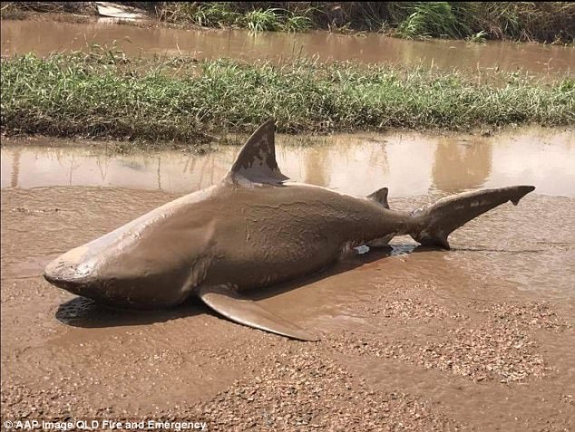 Đây không phải là sinh vật đầu tiên bị cơn bão Debbie cuốn theo. Trước đó, một con cá mập bò được tìm thấy trong một vũng nước ở thị trấn Ayr.