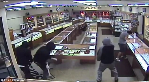 Bọn cướp đột nhập vào tiệm trang sức Sam's Jewelry vào khoảng 8 giờ tối hôm thứ năm.