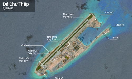 Trung Quốc xây dựng nhiều nhà chứa máy bay ở Trường Sa. Ảnh: CSIS