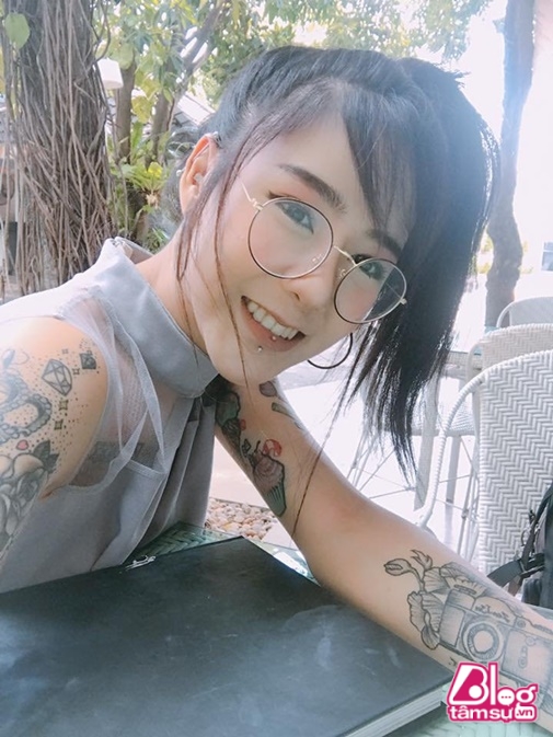 Tuy nhiên, sau khi xăm kín người, cô nàng còn khá e ngại nên thường xuyên đeo khẩu trang chụp ảnh hay đi ra ngoài.