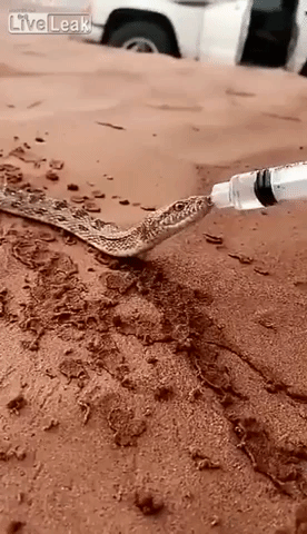 Đoạn video trên cho thấy khoảnh khắc một con rắn đang được một người dân tốt bụng cho uống nước trong sa mạc khô cằn của Ả Rập Saudi.