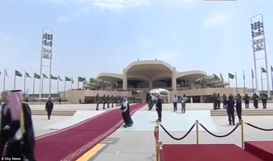 Ông Trump xuất hiện tại sân bay quốc tế King Khalid ở thủ đô Riyadh và được tiếp đón bằng các nghi lễ long trọng. Đáng chú ư, Quốc vương Ả Rập Saudi, ông Salman bin Abdulaziz Al Saud, cũng ra sân bay tiếp đón ông Trump.