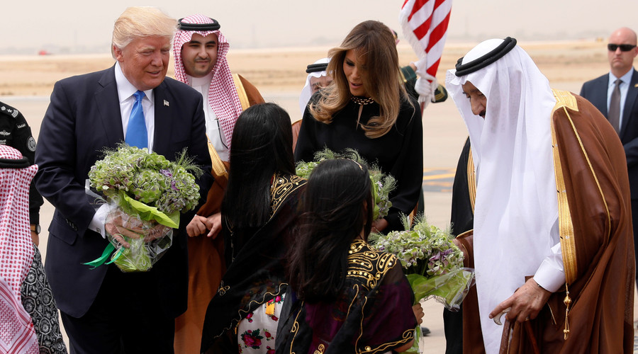 Vua Salman bin Abdulaziz al-Saud được nhìn thấy bắt tay bà Melania khi bà bước xuống từ chiếc Không lực 1 (nhiều người đàn ông Ả Rập Saudi từ chối bắt tay phụ nữ). Luật pháp Ả Rập Saudi quy định phụ nữ phải ăn mặc kín đáo và che đầu khi ra khỏi nhà nhưng không áp dụng đối với khách du lịch nước ngoài. Một số phụ nữ Ả Rập Saudi còn đeo mạng che mặt (niqab).