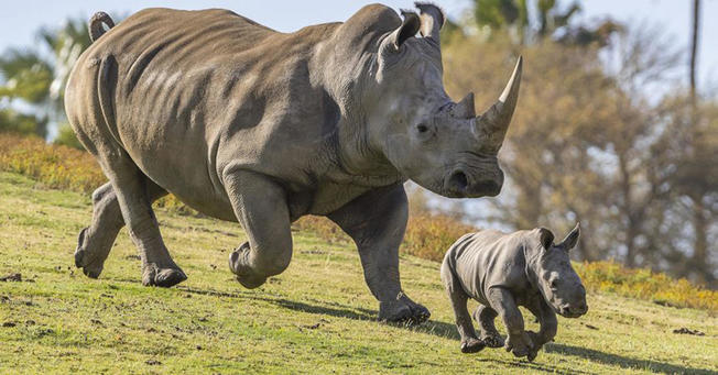 Tê giác mẹ Kiazi và tê giác bố Maoto đã có thêm thành viên mới vào ngày 30/4. Công viên San Diego đã công bố các bức ảnh và video cho thấy tê giác con đang đi dạo cùng với mẹ Kiazi trên các thảm cỏ.