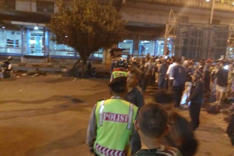 Cảnh sát Indonesia có mặt tại hiện trường vụ nổ. Ảnh: Straitstimes