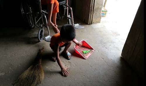 Hai năm đầu sau sinh, chân chị Huyền gần như không đi lại được, phải ngồi một chỗ. Gần đây, nhờ một nhà hảo tâm giúp đỡ, thuê một bác sĩ từ Hà Nội về châm cứu 1 lần/tuần, chân của chị Huyền có dấu hiệu phục hồi.