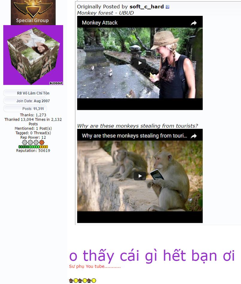 Ở TSN và Nội bài củng có đám khỉ còn dử hơn, chẳng nhửng trộm đồ du khách mà còn làm tiền và rạch hành lý của du khách nửa, cộng thêm một đám khỉ chúa bao che cho đám nầy !