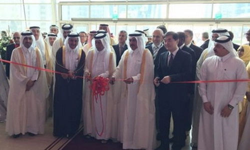 Các quan chức Qatar và Trung Quốc cắt băng khai mạc Triển lãm Thương mại Hàng hóa Sản xuất tại Trung Quốc lần thứ hai ở Qatar tháng 11/2016. Ảnh: China Daily