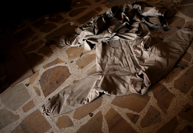 Một binh lính quân đội Iraq kiểm tra căn phòng nơi giam giữ các nữ tù nhân của IS.