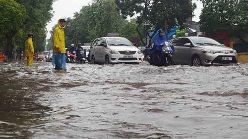 9h15: Hiện nay, mưa đã tạnh hoặc chỉ còn mưa nhỏ ở một số nơi, thế nhưng vẫn còn rất nhiều con đường ngập trong nước.