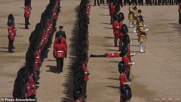 Trong lễ diễu hành mừng sinh nhật nữ hoàng, một người lính đã ngất xỉu và ngã sụp xuống khi nhiệt độ ở ở trung tâm London tăng lên 28 độ C.