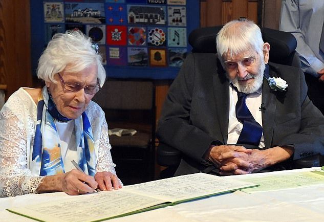 Bà Margaret Husband, 95 tuổi và ông Bernard Brice, 93 tuổi được mệnh danh là cô dâu, chú rể lớn tuổi nhất thế giới khi có tổng số tuổi lên tới 188. Tình yêu của họ nhen nhóm từ 6 năm trước, sau khi bà Margaret đi tổng cộng 250 dặm để đến dự đám tang vợ ông Bernard.