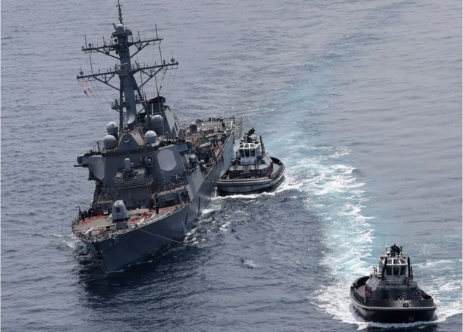 Tàu khu trục USS Fitzgerald có tên lửa dẫn đường và tải trọng 10.000 tấn đã va chạm với tàu chở hàng có trọng lượng gấp 3 lần vào sáng sớm thứ 7 vừa qua.