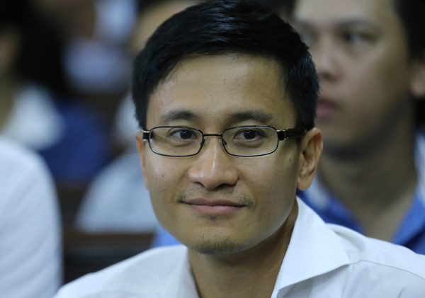 Hai bị cáo tỏ ra khá thoải mái trước phiên xử. Ảnh: VNE