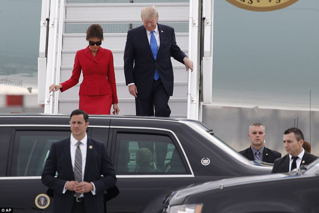 Tổng thống Donald Trump và phu nhân Melania Trump hôm nay 13/7 đă đặt chân xuống sân bay tại Pháp, bắt đầu chuyến thăm chính thức kéo dài 2 ngày tới quốc gia châu Âu. (Ảnh: AP)