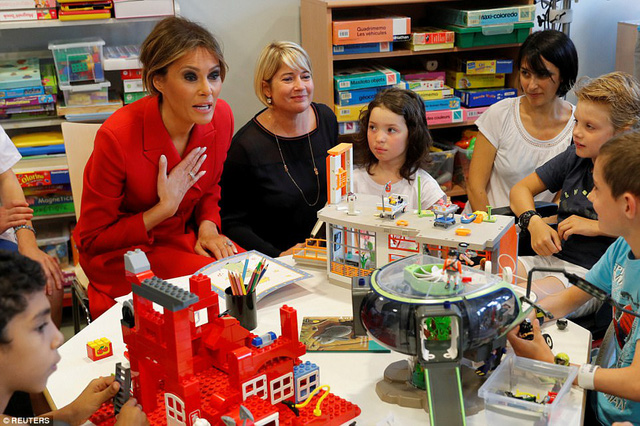 Bà Melania tṛ chuyện với các em nhỏ bằng tiếng Pháp trong chuyến thăm tới bệnh viện Necker. Tiếng Pháp là một trong 5 ngôn ngữ mà đệ nhất phu nhân Mỹ có thể sử dụng thành thạo. (Ảnh: Reuters)