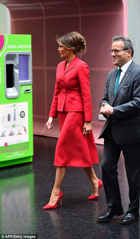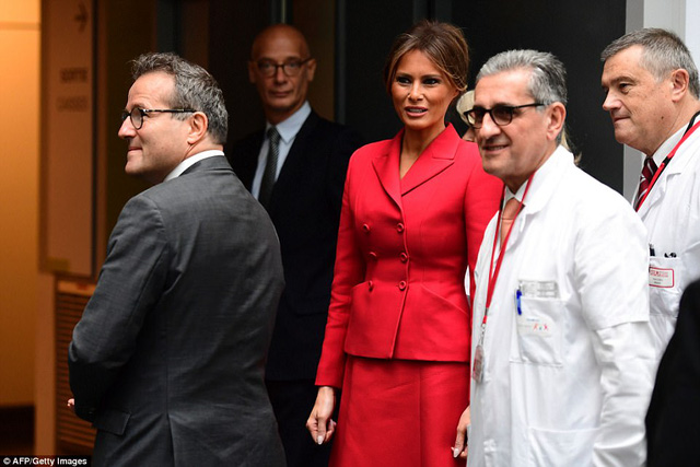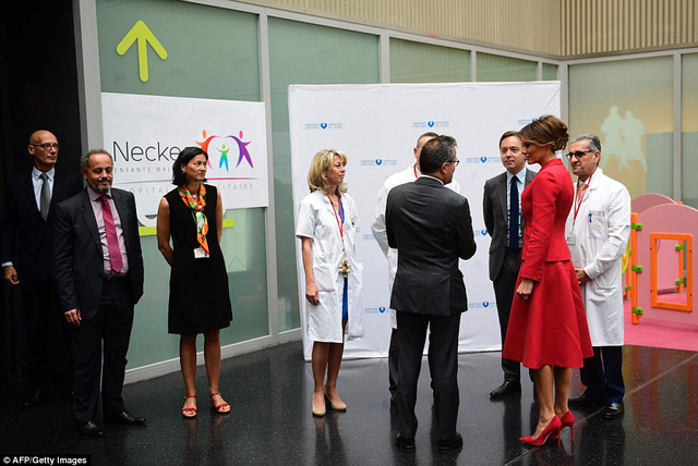 Bà Melania đă dành khoảng nửa giờ đồng hồ để tới thăm bệnh viện Necker (Ảnh: AFP)