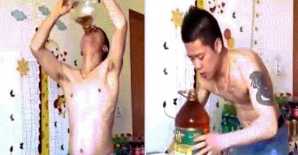 Người đàn ông không hề cảm thấy khó chịu sau khi uống hết chai dầu ăn. Anh ta thậm chí còn tỏ ra tự hào với thành tích của mình.