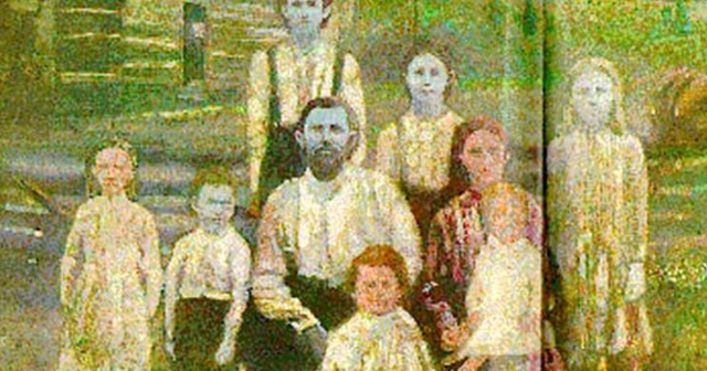 Tranh vẽ về gia đình Fugate với nước da xanh hơn nước mặt hồ (Ảnh: Internet)