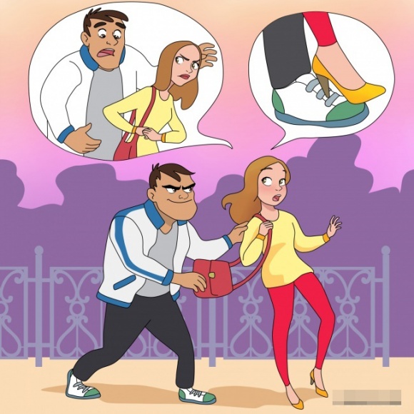 - Nếu đi giày cao gót, hãy giẫm mạnh lên chân của kẻ xấu.