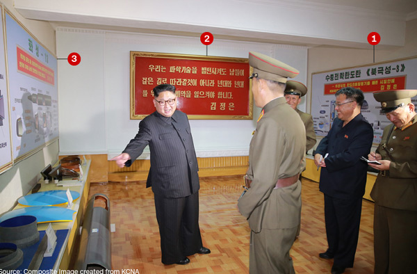 Trong một bức ảnh chụp ông Kim có tấm poster trên tường, đề cập rõ một tên lửa được gọi là "Pukguksong-3", nhiều khả năng là kế thừa của hai phiên bản tên lửa tầm trung sử dụng nhiên liệu rắn trước đó.