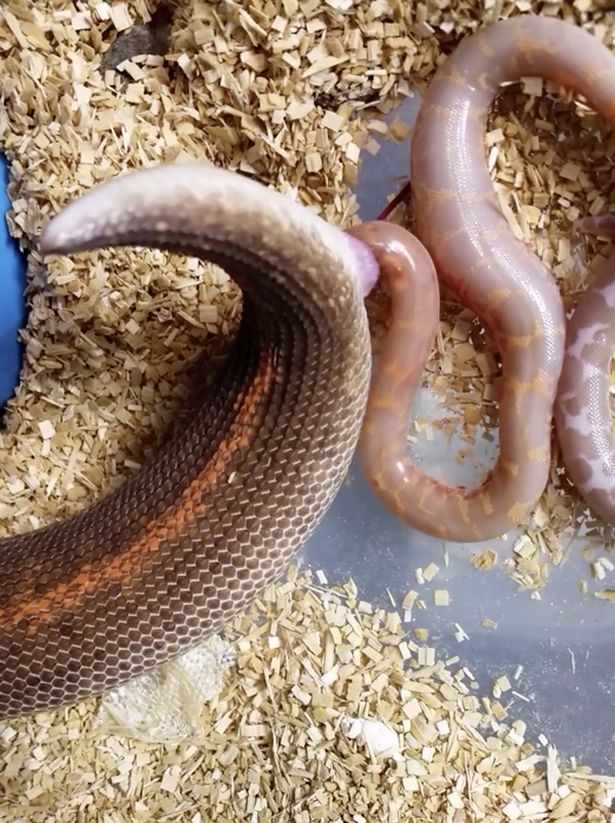 Đoạn video cho thấy cảnh một con trăn cát sinh 6 trăn con vào cuối tuần qua ở Mỹ. Video tuy ngắn nhưng quay cận cảnh quá trình sinh nở ghê rợn, do đó, không dành cho người yếu tim, theo Mirror.