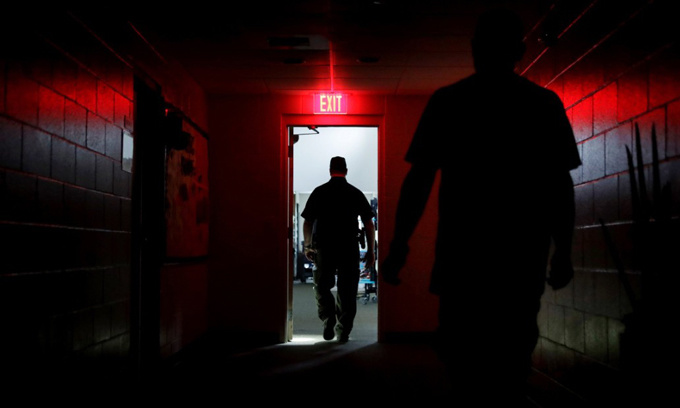 Người dân tránh bão Irma tại nhà thi đấu Germain ở Estero, Florida. Ảnh: AP.