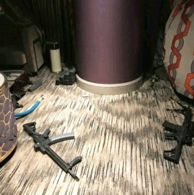 Những khẩu súng trong phòng khách sạn của Stephen Paddock, kẻ xả súng vào đám đông xem ca nhạc ở Las Vegas ngày 1/10. Ảnh: Sun.