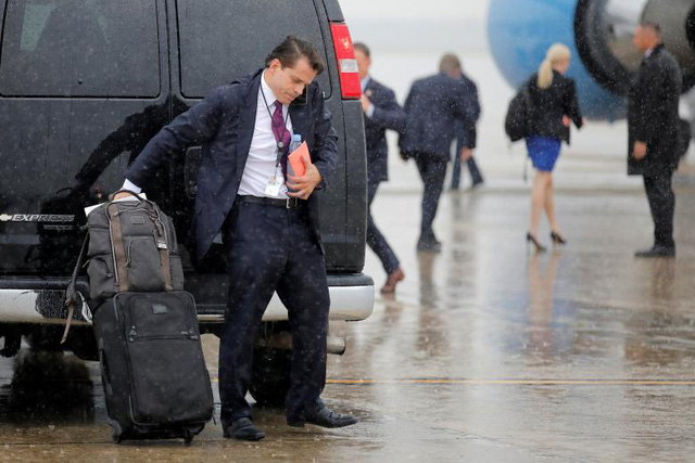 Giám đốc truyền thông Nhà Trắng Anthony Scaramucci tháp tùng Tổng thống Donald Trump tới Ronkonkoma, New York. Ông mới được bổ nhiệm vào chính quyền của Tổng thống Trump gần đây và đã gây không ít ồn ào với những tuyên bố “giật gân”. Gần đây, ông cam kết sẽ chặn mọi nguồn tin bị tiết lộ.