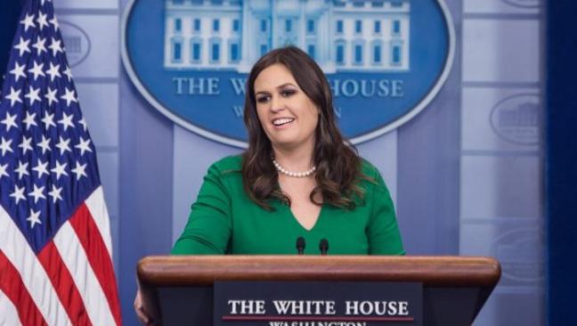 Thư ký Báo chí Nhà Trắng Sarah Sanders phát biểu trong một cuộc họp báo vào ngày 27/10/2017 (Ảnh: Samira Bouaou.