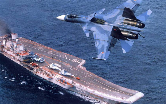Tiêm kích Su-33 và tàu sân bay Kuznetsov.