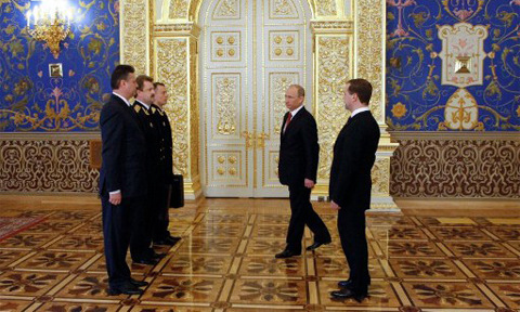 Tổng thống Putin nhận vali Cheget tại Điện Kremlin năm 2012.