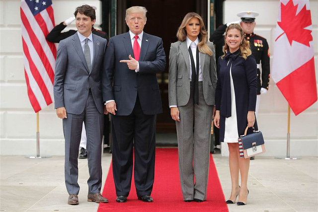 Tổng thống Mỹ tiếp Thủ tướng Canada Justin Trudeau và phu nhân tại Nhà Trắng ngày 11/10. (Ảnh: Getty)